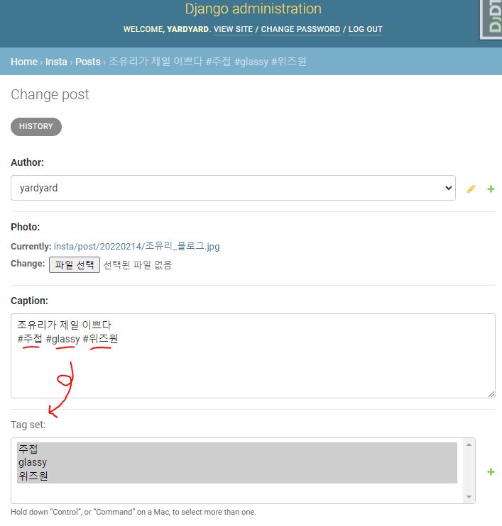 # post의 tag_list를 호출하여 Post 모델의 tag_set에 저장한다.
