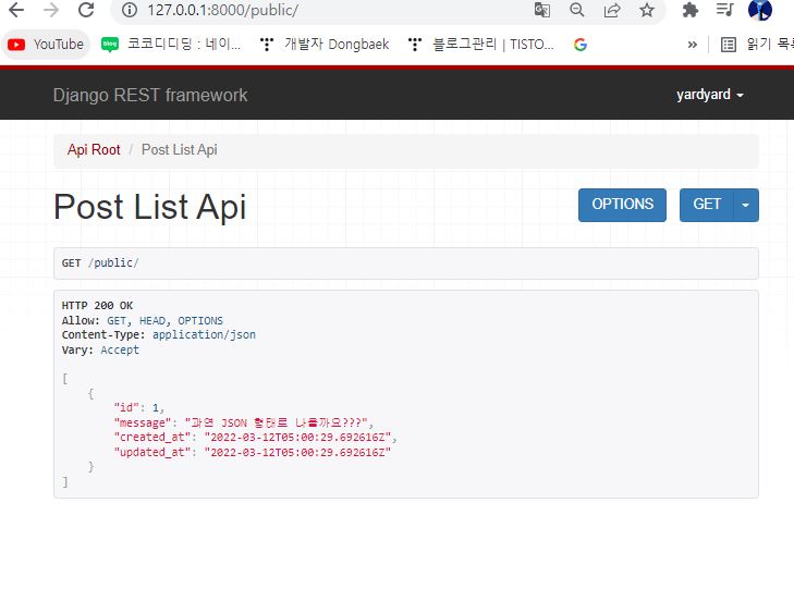 | DRF로 APIView, Json 응답뷰 만들기 (0) | 2022.07.11 |