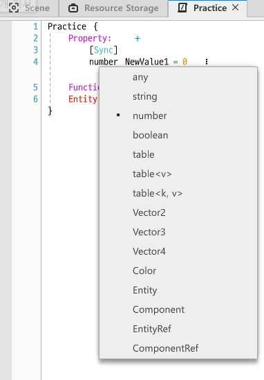 또한 Property의 타입들도 설정할 수 있는데, 일부 타입(any, table)은 동기화가 지원되지않는다.