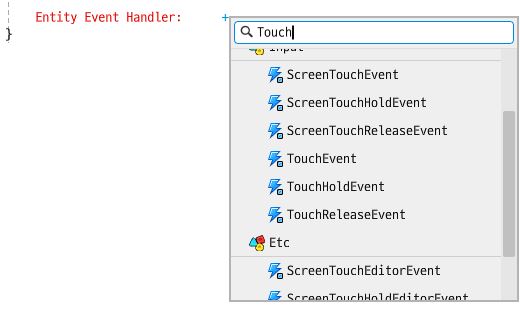 - TouchEvent : Entity를 터치했을 때 발생하는 이벤트, 엔티티에 TouchReceiveComponent 컴포넌트가 있어야 이벤트 발생