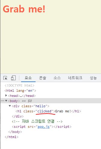 else라면 h1.className을 active로 설정해라( CSS에서 설정한 색깔로 바꿔라)
