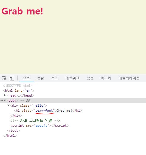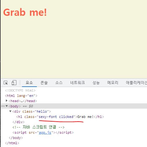 h1.className = "active"; // 반드시 className이 CSS에서 작성한 클래스 이름과 같아야 함!!!