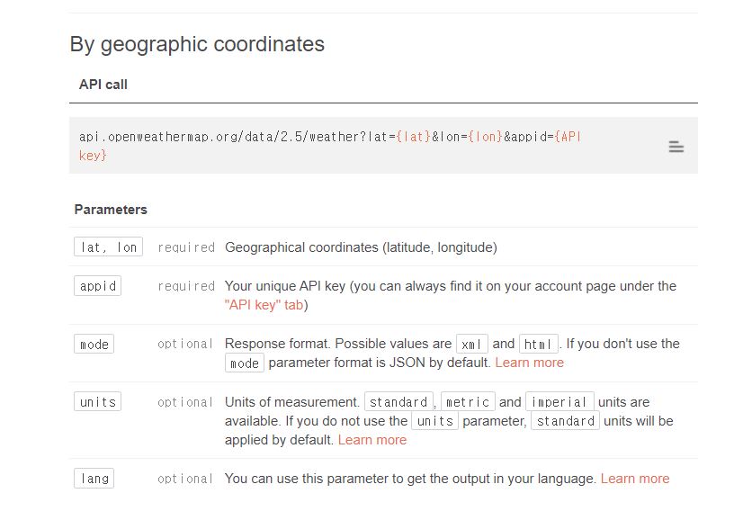 0. https://openweathermap.org/current 에서 아래 api를 사용할거임.