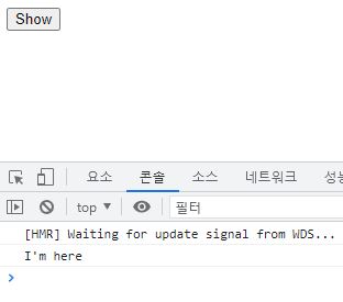 {/* 버튼을 클릭시 함수가 호출되고, value가 false이면 "Hide, True이면 "Show"출력*/}
