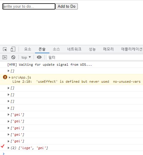 // 아래 코드는 toDo를 기존 currentArray에 새로운 인덱스로 넣어서 새로운 array를 만든다는 뜻이다.