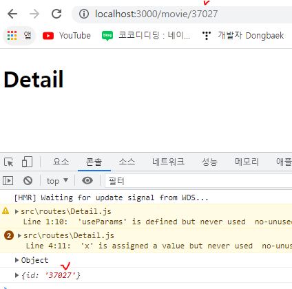 1. React Router에게 이 url이 변수를 받을 것이라고 말해준다.