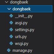 dongbaek : 프로젝트 명으로 생성된 디렉토리. 다른 이름으로 변경해도 상관없음