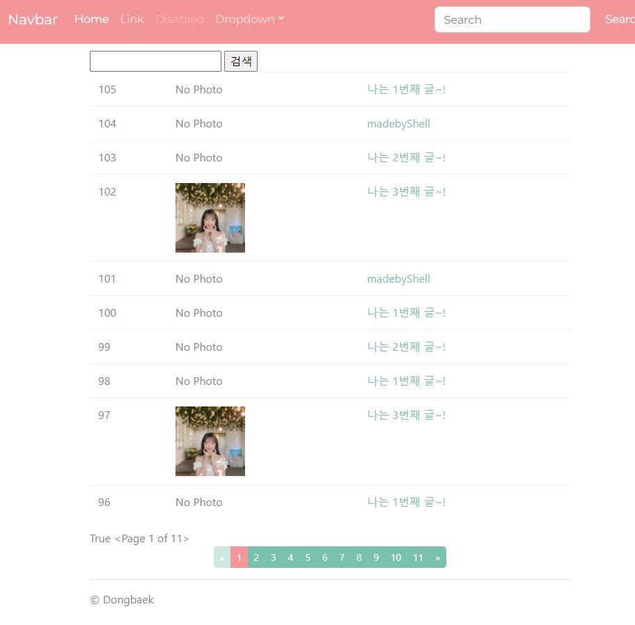 {% block title %} Instagram / Post List {% endblock title %} {% block content %} <form action="" method="get"> <input type="text" name="q" value="{{ q }}" /> <input type="submit" value="검색" /> </form> <table class="table table-borderd table-hover"> <tbody> {% for post in post_list %} <tr> <td> {{ post.pk }} </td> <td> {% if post.photo %} <img src="{{ post.photo.url }}" style="width: 100px;"/> {% else %} No Photo {% endif %} </td> <td> <a href= "{{ post.get_absolute_url }}" > {{ post.message }} </td> </tr> {% endfor %} </tbody> </table> {{ is_paginated }} {{ page_obj }} {% if is_paginated %} {% bootstrap_pagination page_obj size="small" justify_content="center" %} {% endif %} {% endblock content %}