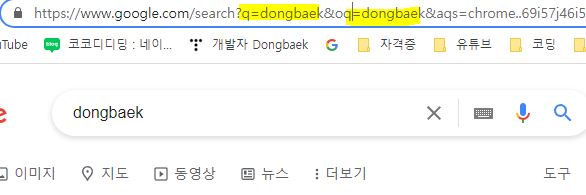- 모든 QueryString 인자 목록 # 주소에서의 ?q=dongbaek&source=hp와 같은 형태