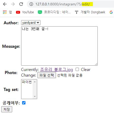 View에서의 ModelForm 처리 (Edit, 수정하기)