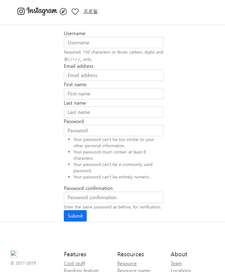 3. accounts/templates/accounts/에 signup_form 템플릿 구현